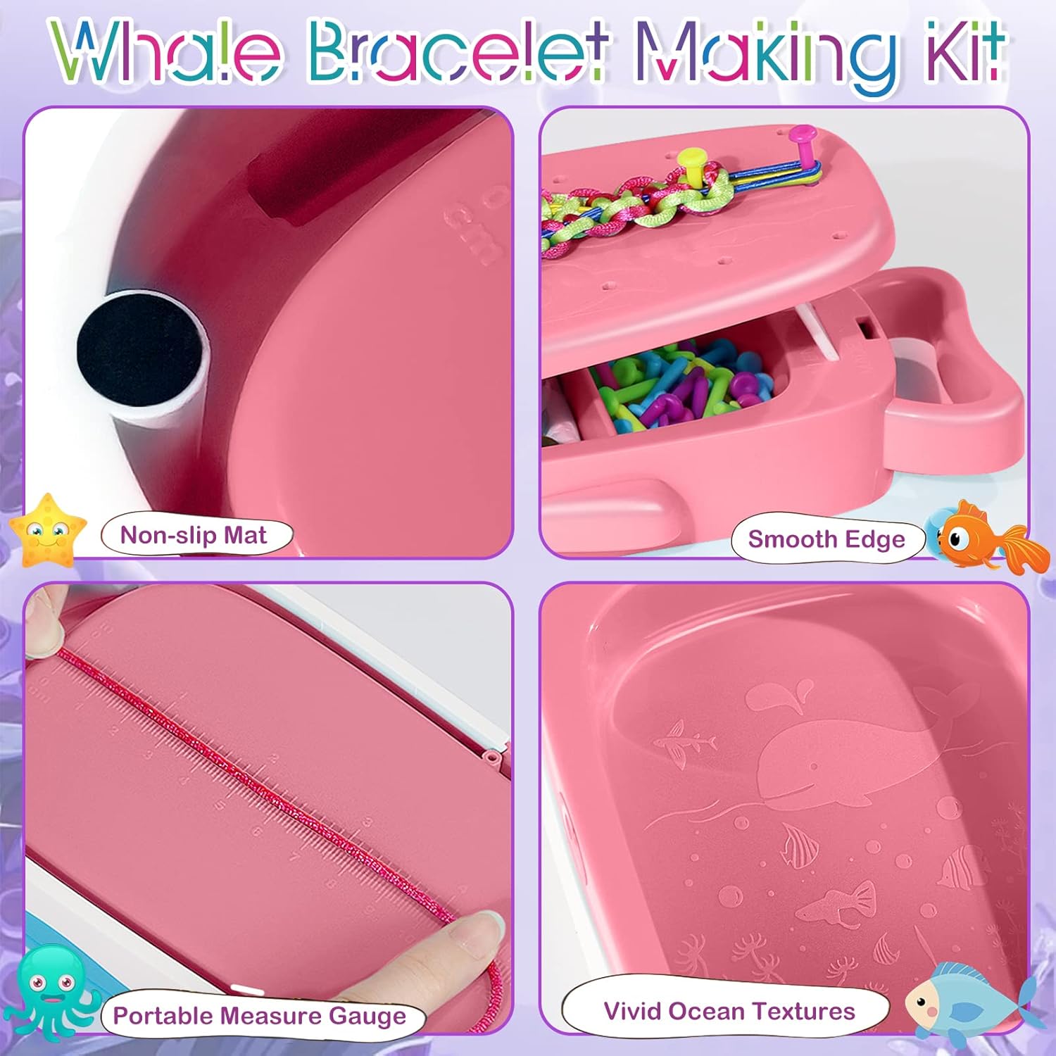 Funny Whale Bracelet Making Kit: Guess what’s in this cute whale’s belly? This kit includes 1 whale-shaped bracelet loom, 16 braided ropes in 10 colors, 16 sturdy elastics, 16 cartoon buckles, 30 fashion pattern stickers, 25 colorful pegs, and 1 instructional guide. This pink whale has a streamlined body and smooth edges for a better braiding experience for kids.