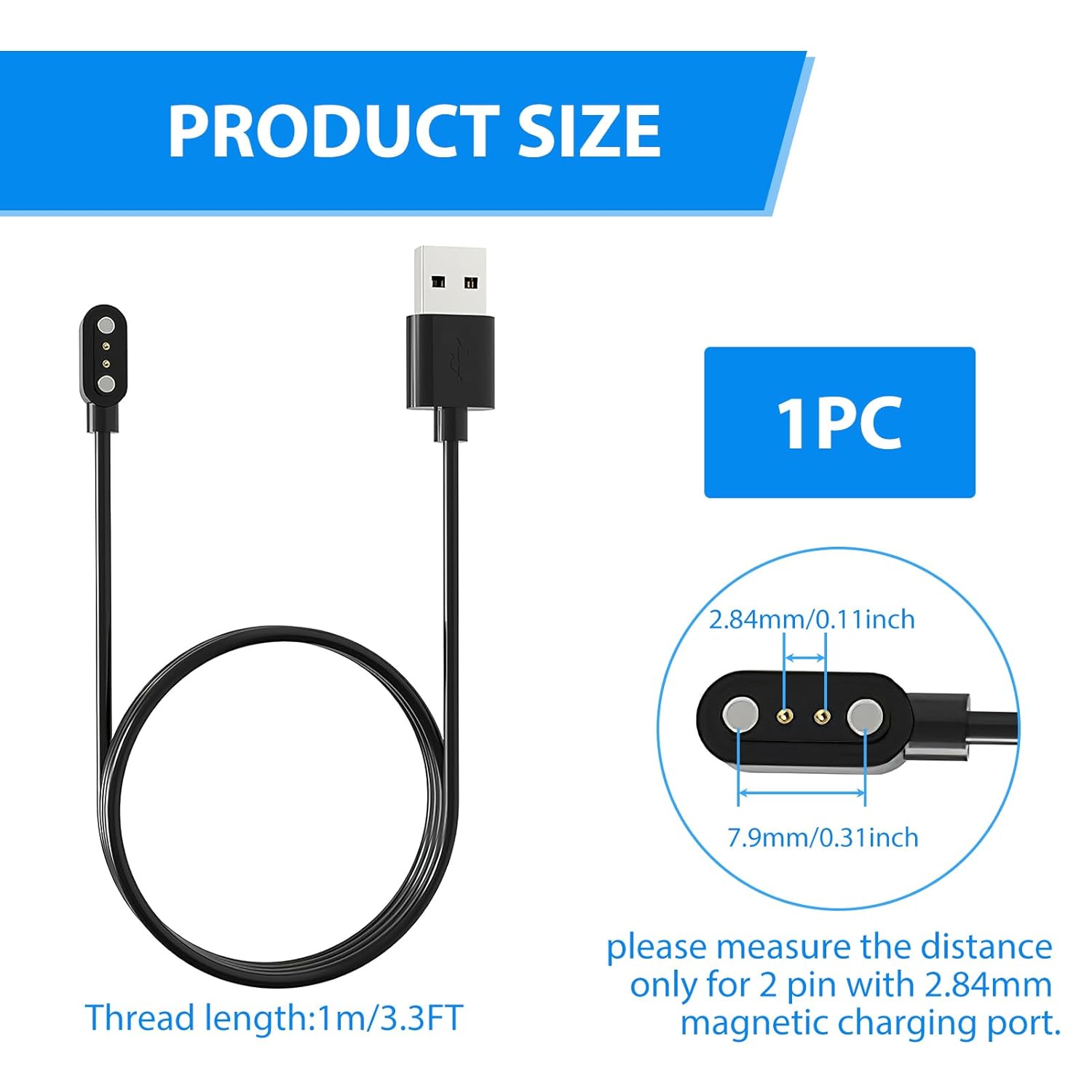 【Fits 2.84mm Pin Spacing Charging Ports】Compatible with smartwatch that has a 2.84mm (0.11in) distance between the two magnetic charging pins. If you’re unsure whether this charger is suitable for your device, please measure the distance between the charging port pins to ensure compatibility.