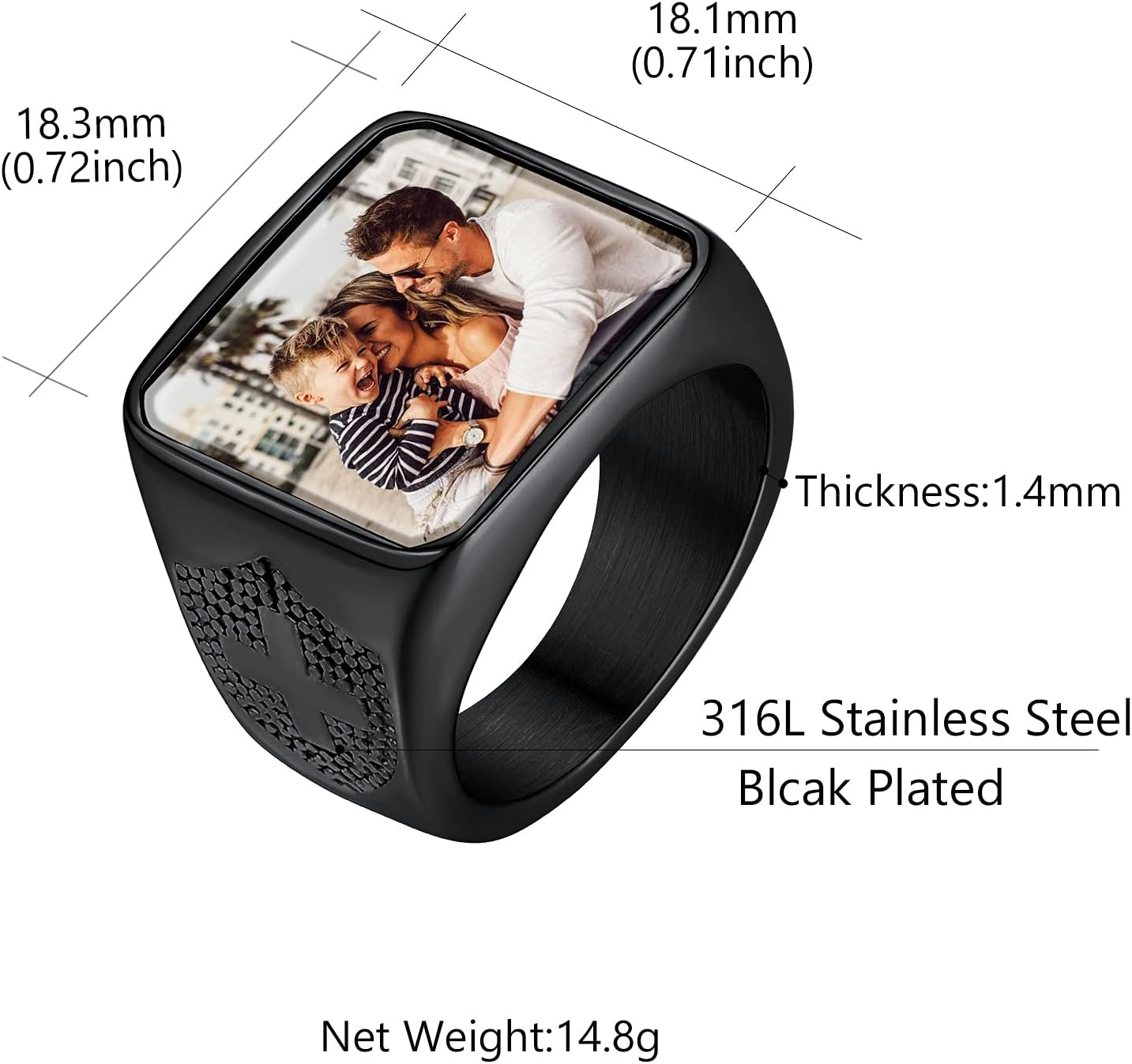 Custom4U Photo Rings for Men Women Stainless Steel/Gold Plated/Black, Round/Heart/Square Personalised Signet Rings Gifts for Mother Father Husband Son,Size 1/2N-Z+1 (with Jewellery Gift Box)