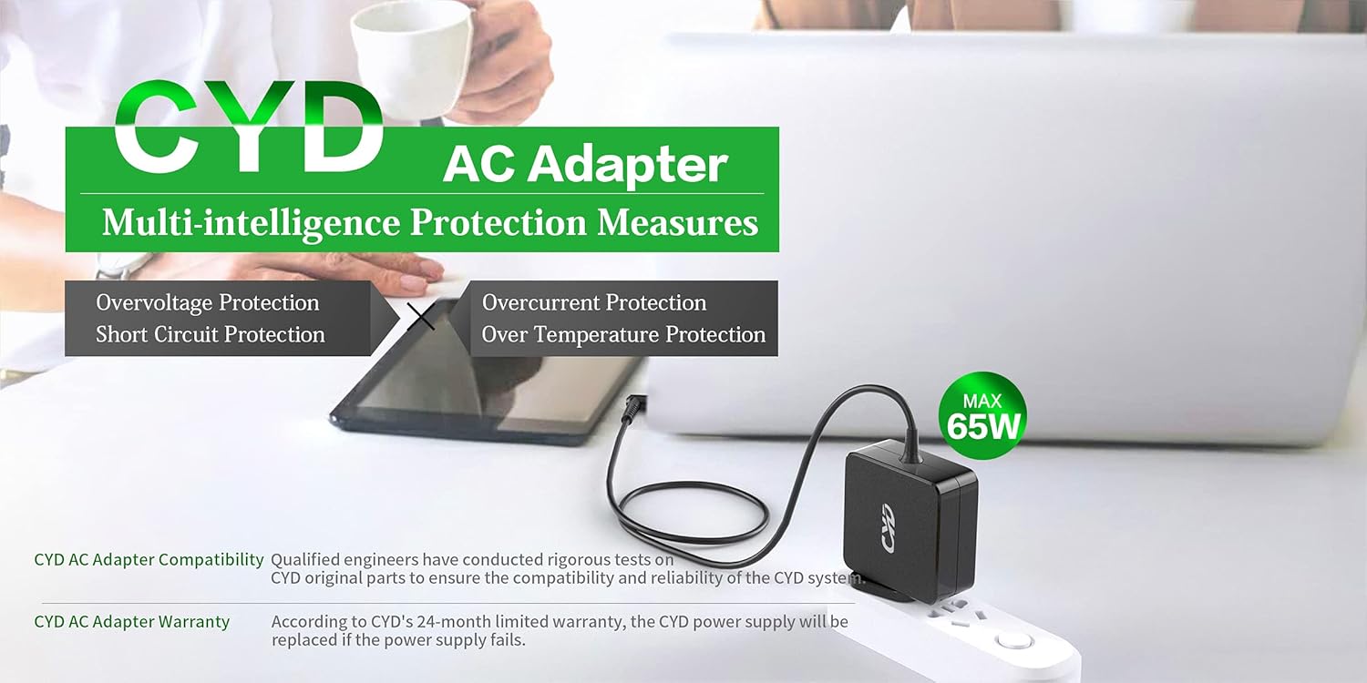 65W CYD laptop charger is an alternative to Acer charger. Here are its basic specifications