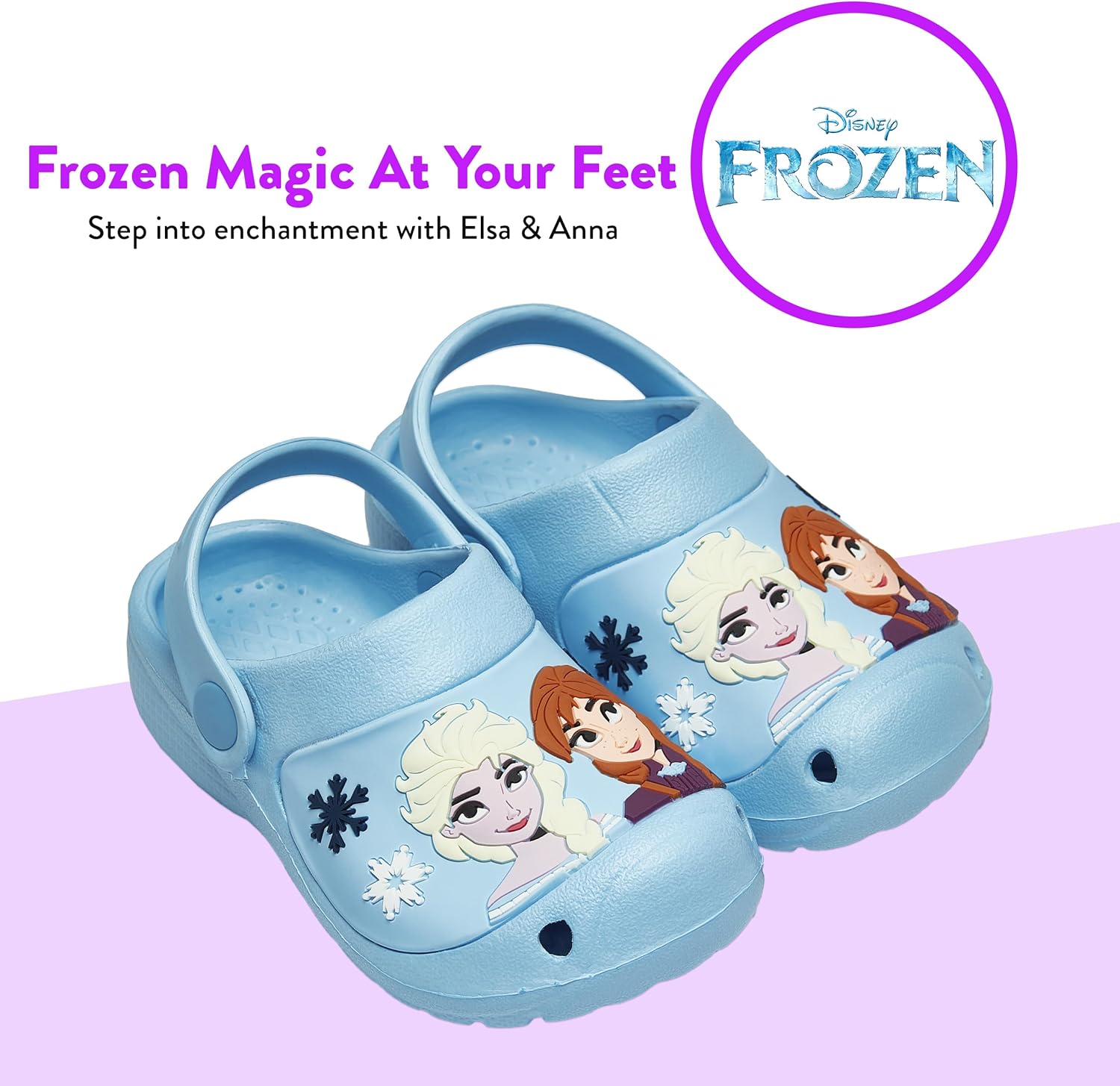Step into a world where every day is an adventure with these enchanting Disney Frozen sandals. Perfectly designed for the young princess in your life, these girls’ sandals combine the magic of Disney’s Frozen with the practicality and comfort needed for all-day play. Featuring beloved characters Queen Elsa and sister Anna set against a whimsical background of snowflakes, these shoes for girls are not just footwear – they’re a step into a magical world. Crafted with love and attention to detail, these Frozen Elsa kids beach shoes boast a vibrant blue colour scheme that mirrors the enchanting world of Elsa and Anna. The design includes a smiling image of the royal sisters, bringing joy with every step your child takes. Practicality meets magic with the versatile movable strap, designed to provide a secure fit for active play or can be flipped to the front for easy slip-on access, catering to the whims of your little one’s adventures. Whether it’s a day by the pool, a trip to the beach, or just everyday play, this Disney Princess sandal are built for fun and fashioned for the fantasy. But the enchantment doesn’t stop there. These princess shoes are not only a nod to the beloved Disney princesses but also a testament to the joy of childhood. They serve as perfect kids swim shoes, toddler sandals, and sandals for kids across various ages. Their versatility makes them ideal for summer escapades, offering comfort as girls summer shoes and reliability as kids water shoes. Whether your little one is playing in the backyard or adventuring in a far-off kingdom, these Elsa shoes are ready for every magical journey. Perfect as a gift, these Disney princess shoes will light up your child’s face and heart. Ideal for birthdays, holidays, or just because, these children’s sandals are more than just footwear; they’re a cherished memory waiting to happen.
