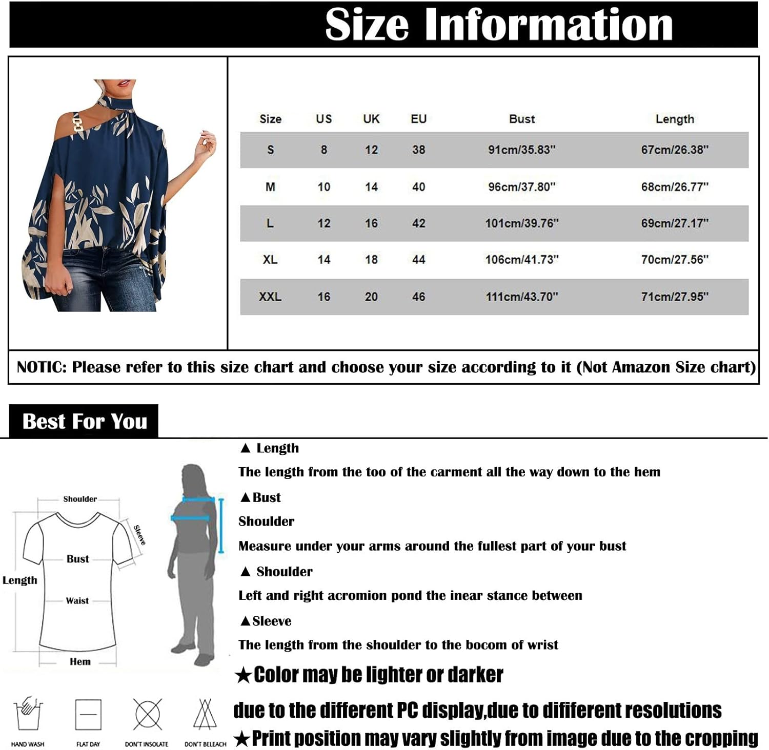 DOGZI Women’s Off The Shoulder Choker High Neck Long Sleeve Shirt Floral Print Baggy Casual Loose Fashion Tunic Tops