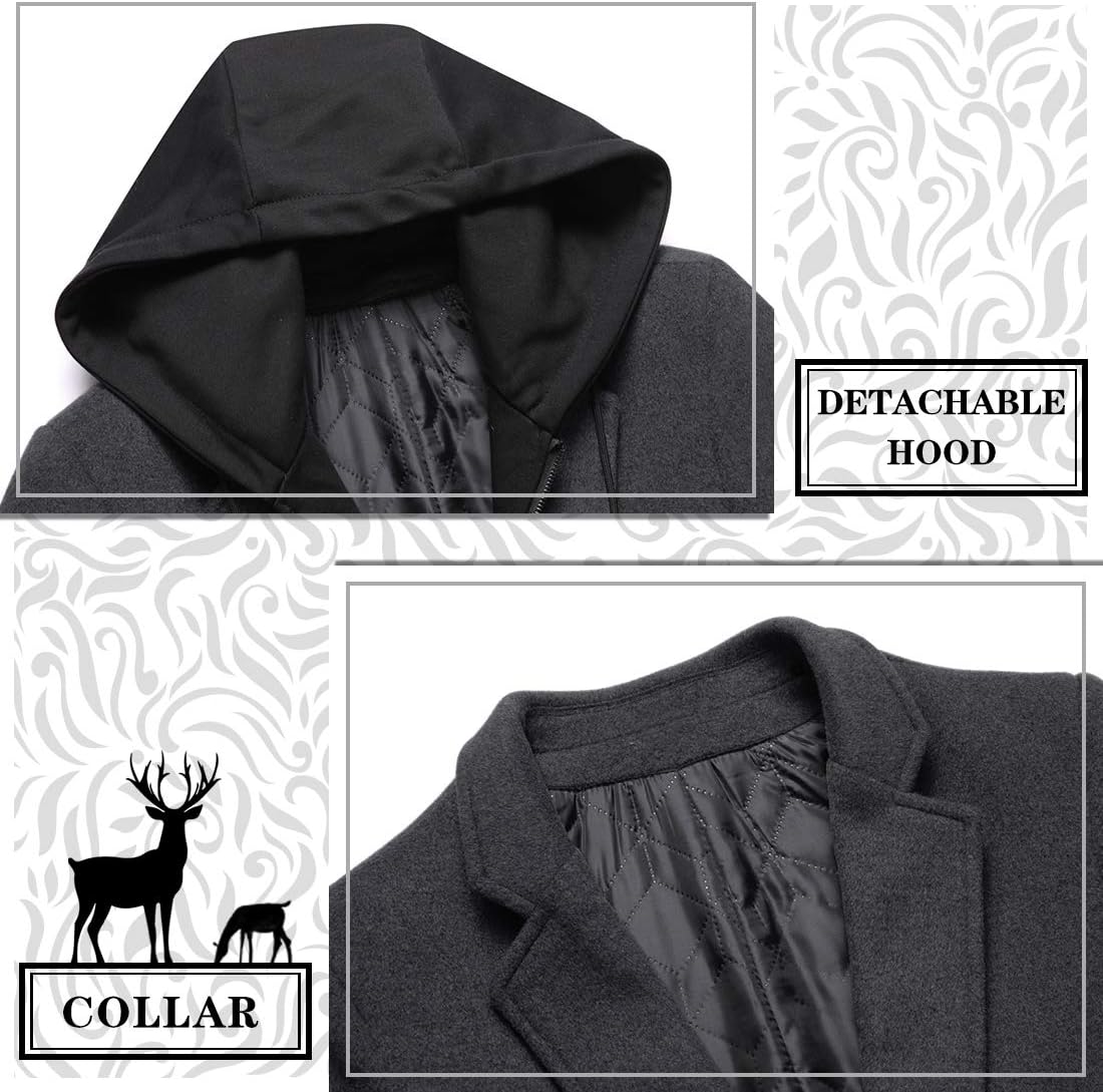iCKER Men’s Wool Woolen Coat Long Trench Coat Winter Casual Jacket Slim Fit Overcoat