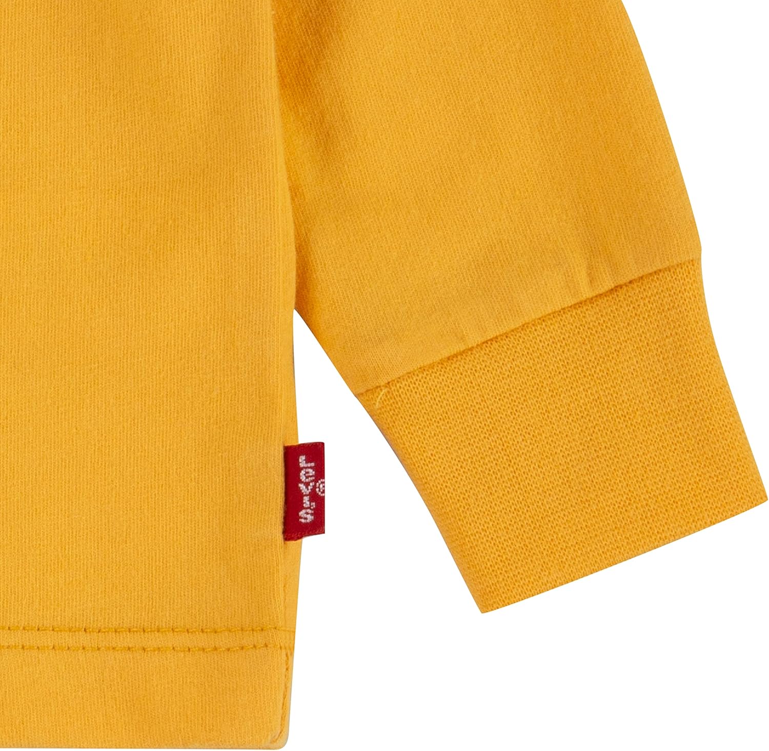 This top by Levi’s is made of organic cotton jersey knit fabric that feels soft and smooth on little ones’ skin. It has long sleeves for extra coziness and warmth and features the signature Levi’s batwing logo with the playful bulldog mascot.