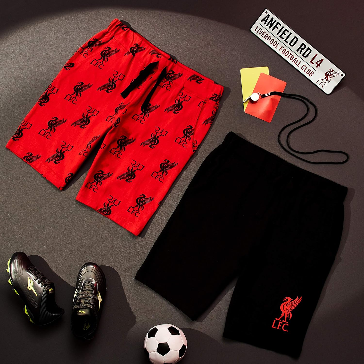 PREMIUM QUALITY FOOTBALL SHORTS — these fantastic sports shorts for boys and teenagers are made with high quality material. The stunning print of the Liverpool Football club logo will make any supporter feel happy. Our boys clothes are super soft, lightweight and breathable, perfect for the little one. (Red and grey set of shorts: red 100% cotton, grey cotton/mix. Red and black set of shorts: 100% cotton for both)