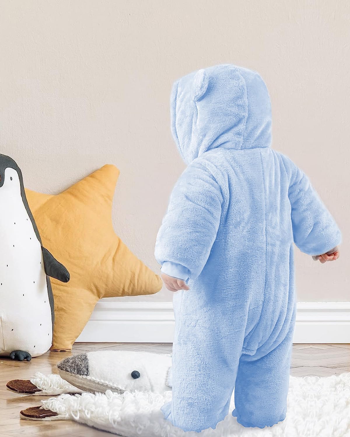 ♥【100% Soft And Warm Flannel】: The baby romper is made of high quality material, soft to the touch and harmless to your baby’s skin. Baby winter onesie with hood. Cotton and polyester. Thick enough to keep your baby warm on cold days.