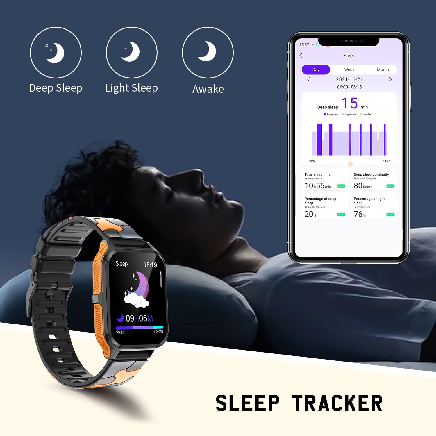 Let you know the sleep quality( deep sleep,light sleep and awake)