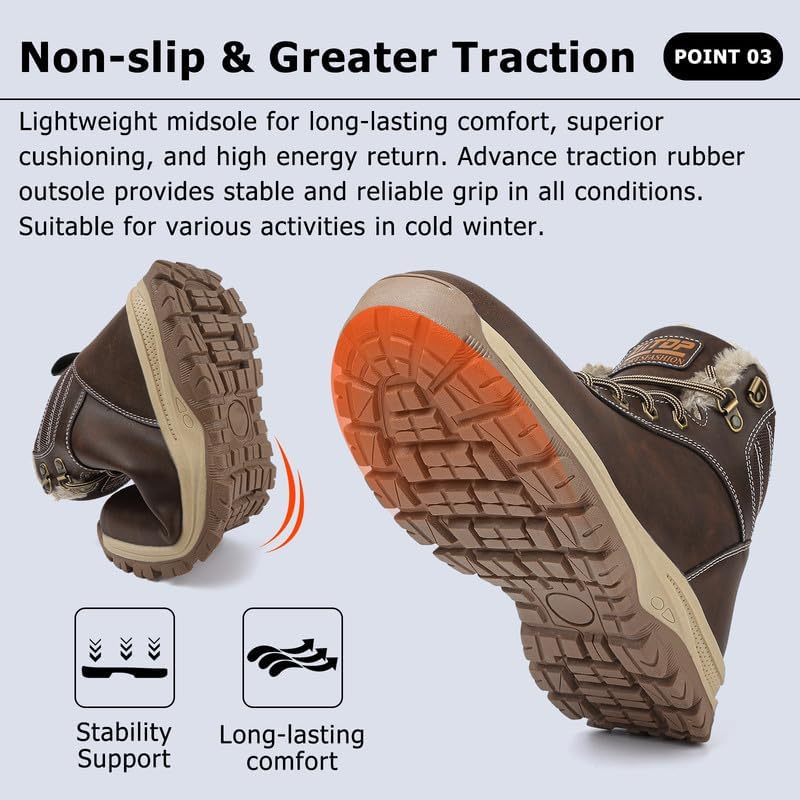 Winter Snow Boots Mens Walking Boots Waterproof Hiking Boots Warm Ankle Boots Mid Lace-up Non-Slip Outdoor Trekking Shoes