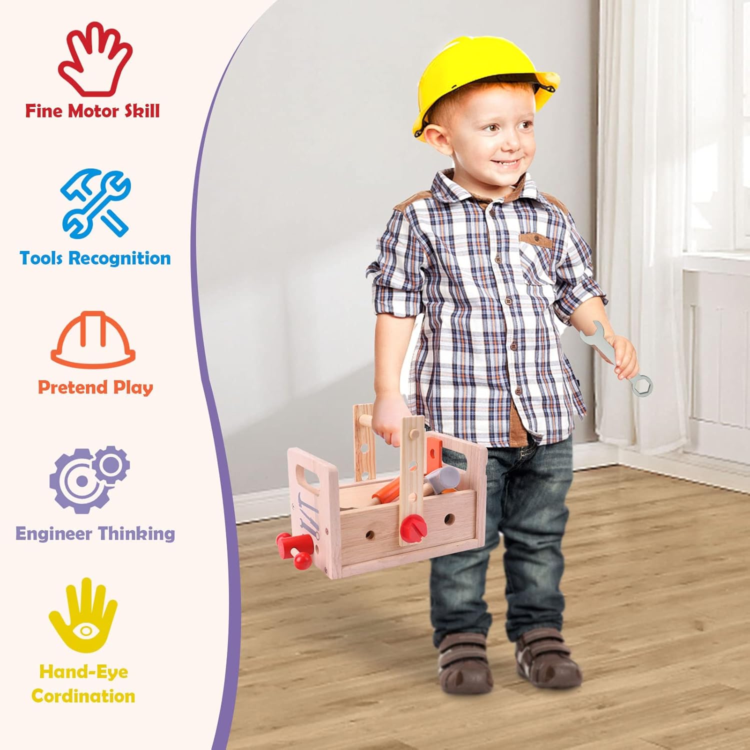🎁【Ideal Gifts for Kids Age 3 4 5】XiAPIA wooden tool is a great gift for preschool early training. Ideal for role-playing games, educational learning, family activities, indoor and outdoor activities. This kids construction toy building set suit for children 3 4 5 years old, is a good Christmas holiday Easter birthday gift for boys and girls.